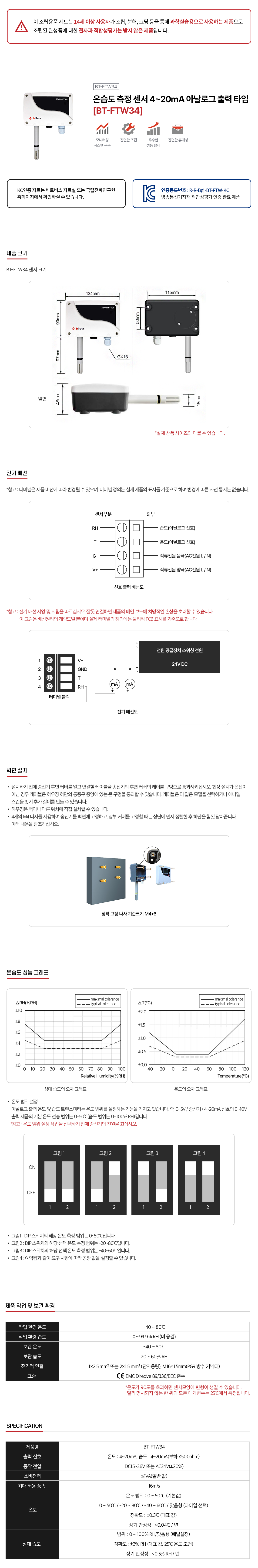 온습도 측정 센서 4~20mA 아날로그 출력 타입 [BT-FTW34]
