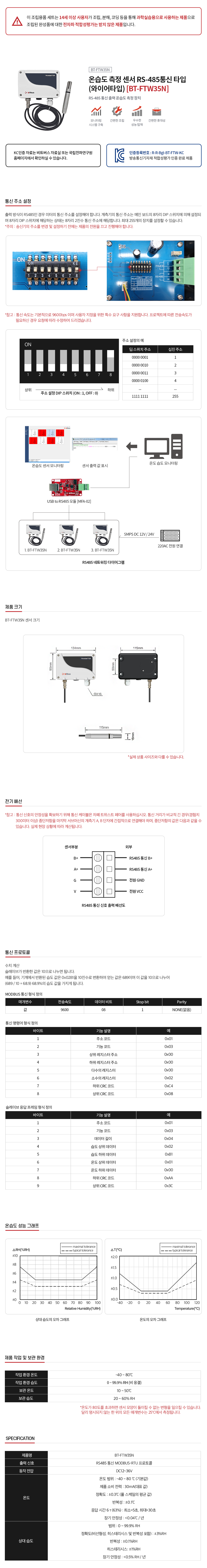 온습도 측정 센서 RS485통신 타입(와이어타입) [BT-FTW35N]