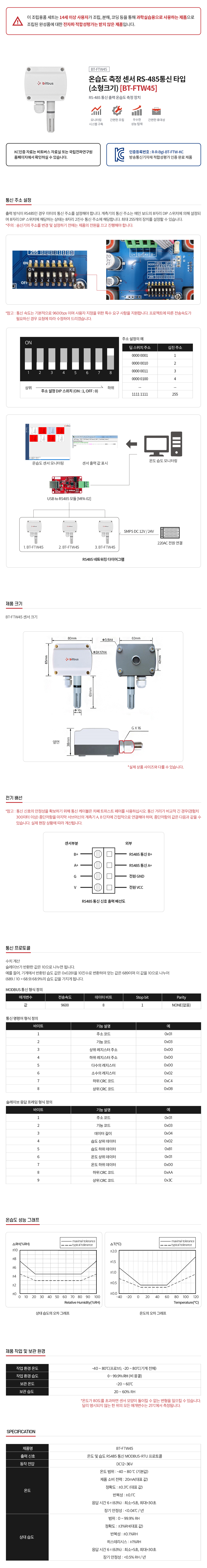 온습도 측정 센서 RS485통신 타입(소형크기) [BT-FTW45]
